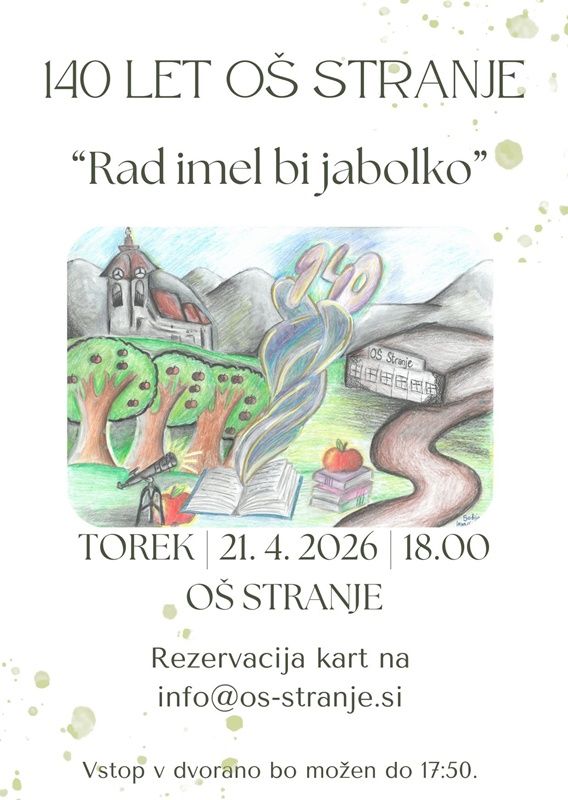 V četrtek, 2. 4. 2026, bodo imeli učenci 9. razreda ekskurzijo v Posočje. Ogledali in spoznali bodo sledi prve svetovne vojne ter si ogledali najbolj gorato območje Slovenije. Zbor: 6.50 v avli (počakate na učitelje). Odhod: 7.10. Predviden prihod: 17.30. S seboj morate imeti veljaven osebni dokument (osebna izkaznica, potni […]