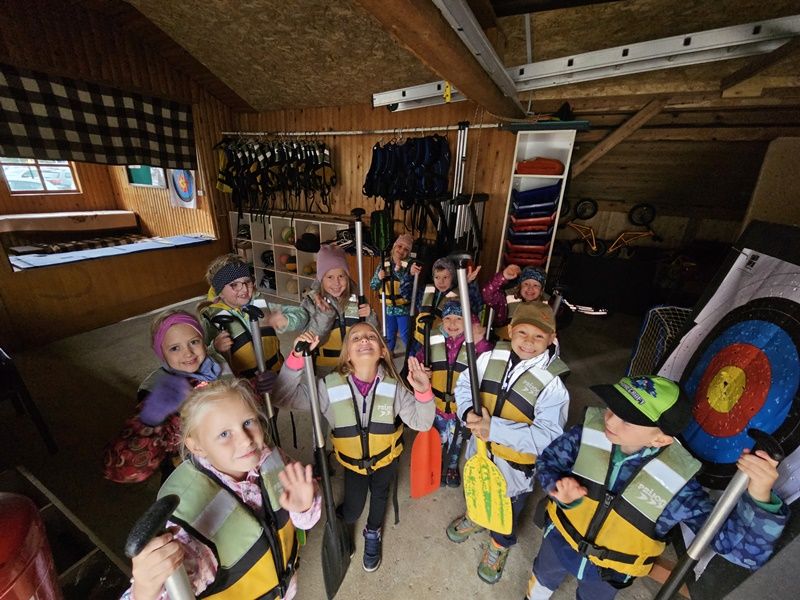 Dobro naspani in spočiti smo po zajtrku obrnili skupini in še ostali spoznali gozdno učno pot in se preizkusili v veslanju. Popoldan smo odšli na ogled kraške jame Medved in raziskovali travniške rastline ter živali.